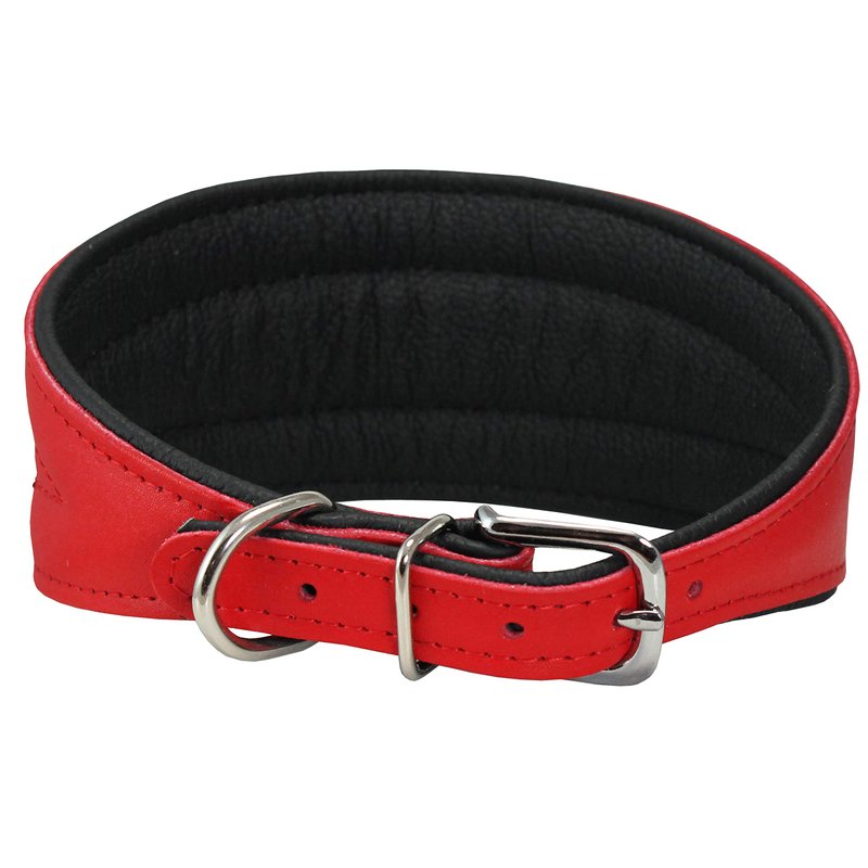 Dogs My Love Real Leather Extra Wide Padded Tapered Dog Collar (13.25"-15.25" Neck; 2.5" Wide, Red)