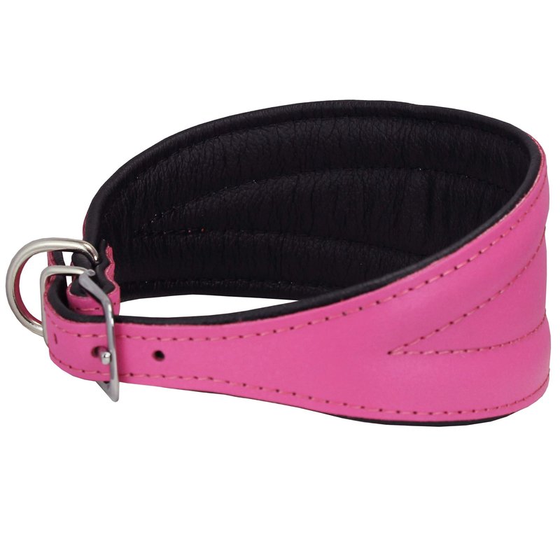 Dogs My Love Real Leather Extra Wide Padded Tapered Dog Collar (16.25"-18.75" Neck; 3" Wide, Pink)