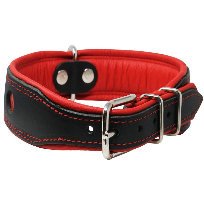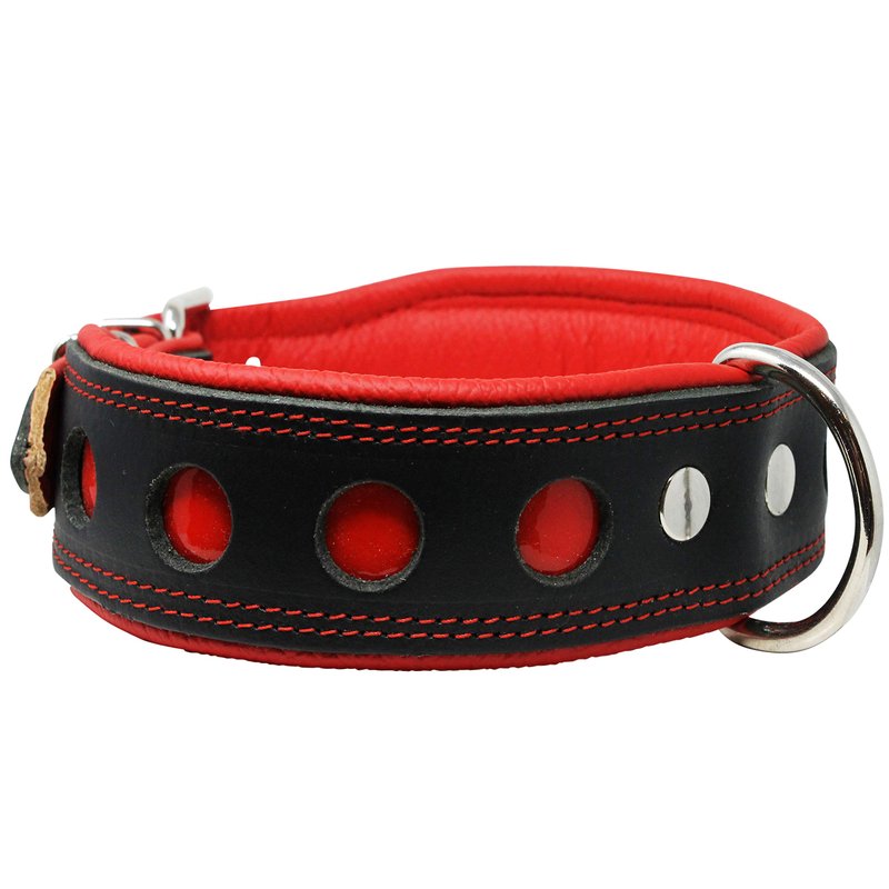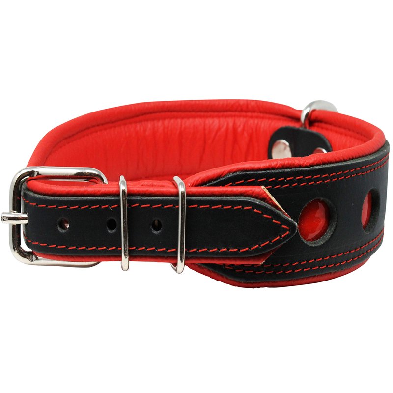 Dogs My Love Real Leather Soft Leather Padded Dog Collar Reflective (13.75"-16.25" Neck; 1.75" Wide, Black/Red)