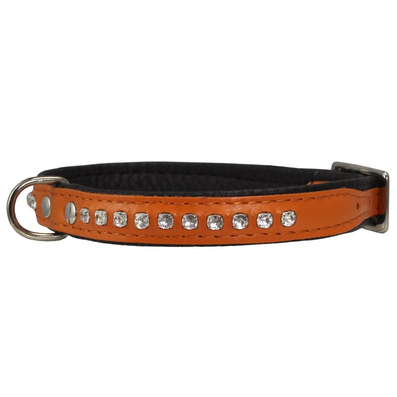 Dogs My Love Rhinestone Genuine Leather Dog Collar (Orange, 8"-9.5" Neck)