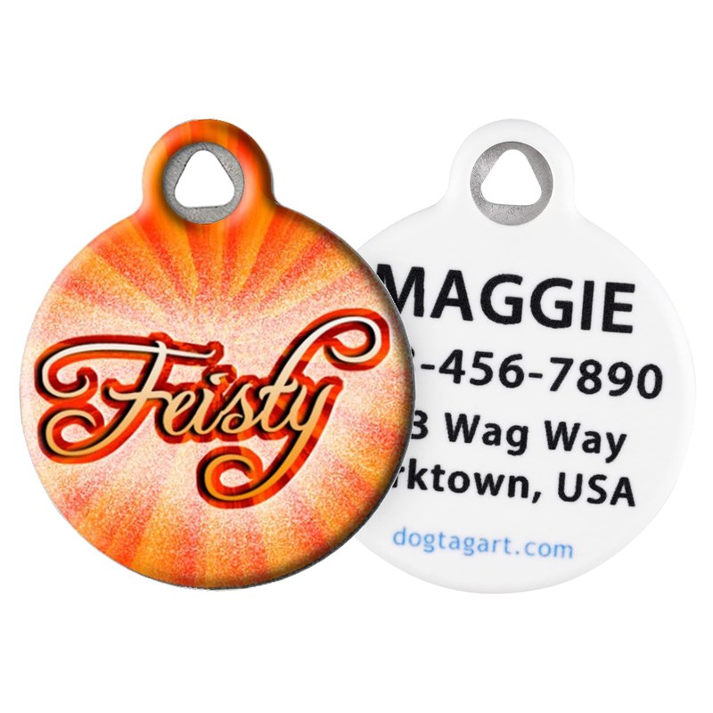 DogTag Art Feisty Custom Pet ID Tag for Dogs and Cats, Silent Nametag - Small .875" Diameter
