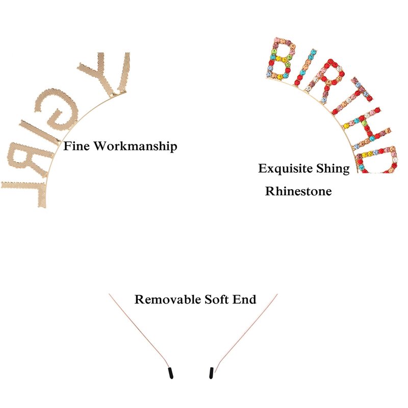 - Material: Alloy, rhinestone. Bright, durable and colorfast. Wearing this shiny headband will add a touch of sparkle to your birthday party, and you will get more compliments and blessings on this special day!