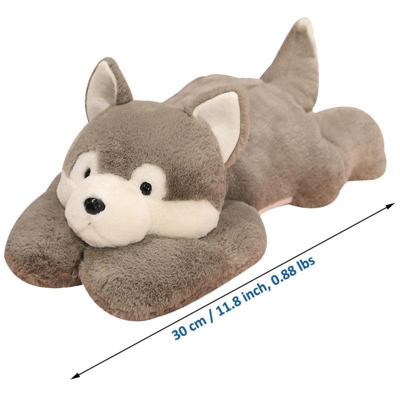 - SIZE: The husky weighted stuffed animal is about 30 cm long and weighs about 0.88 lbs.