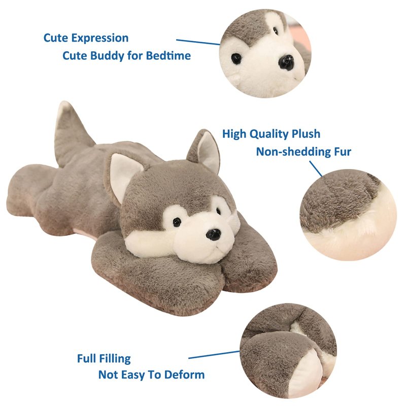 - USES: Weighted husky plush toy is a very practical pillow, you can hold it when watching TV, sleeping, and resting, or you can put it on a chair to give you good lumbar support. You can also put it on the floor, bedroom, bed, sofa, car, etc. everywhere, perfect decoration.