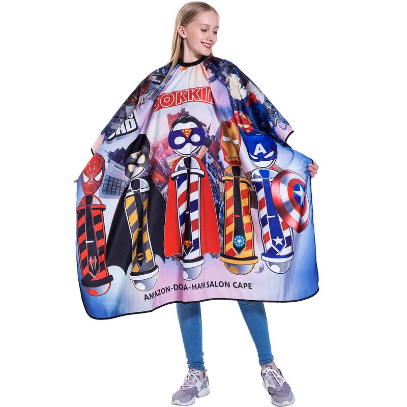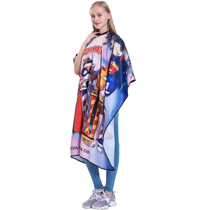 - BREATHABLE, LIGHTWEIGHT MATERIAL:This Salon Cape is Crafted from Comfortable and Smooth to Touch,3D Heat Sublimation Printing,Soft Durable Polyester Material,Water Repellent,Waterproof and Very Easy to Wash and Clean,Making no Stimulation to Your Skin.Water-repellent and Anti-static,It Protects against Hair Dye and Other Harmful Liquids,Keeping your Clothes Dry and Clean,Perfect Accessory for Any Hair Salon or Home Use