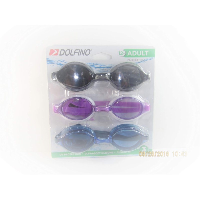 Dolfino 3 Pack of Adult, Assorted Colors, Swim Goggles