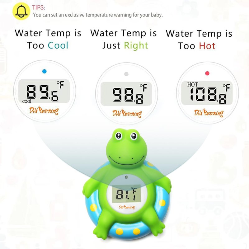 - [QUICK& ACCURATE] It will tell you the water temperature within 1 second, and you can easy to read it from the big LCD display, which helps you to confirm a comfortable water temperature for your baby to enjoy bath fun.