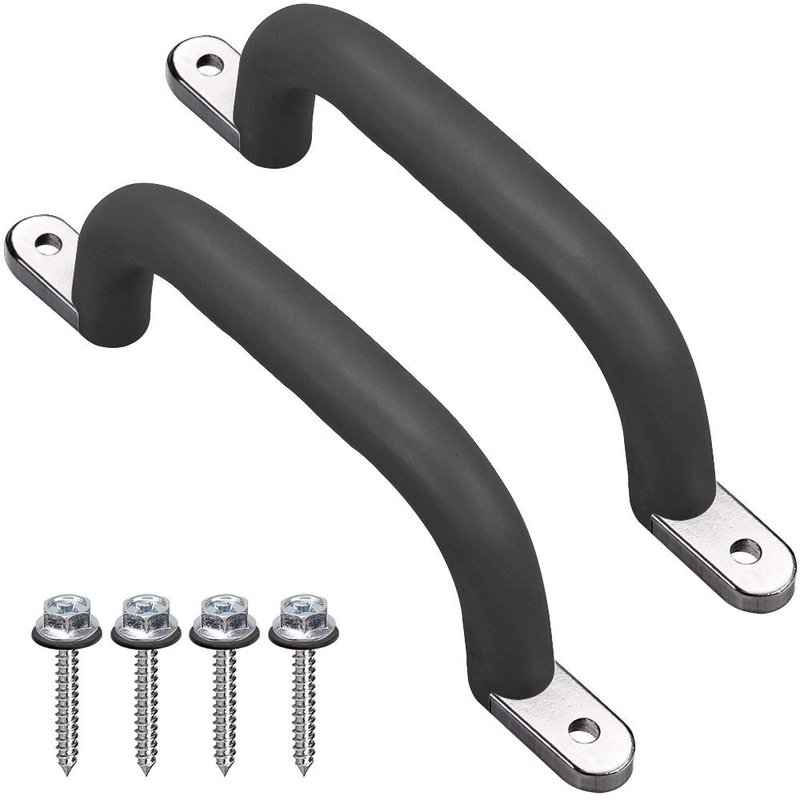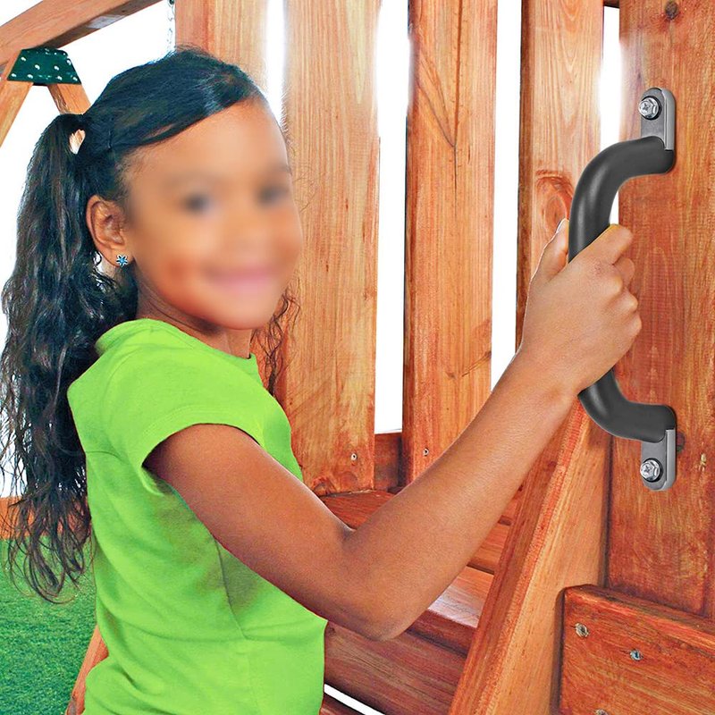Dolibest Set of 2 Non-Slip Solid Playground Safety Handles, Swing Set Kids Safety Hand Grips for Playset, Climbing Frame, Play House, Indoor Monkey Bars & Treehouse Accessories, Black, 10"