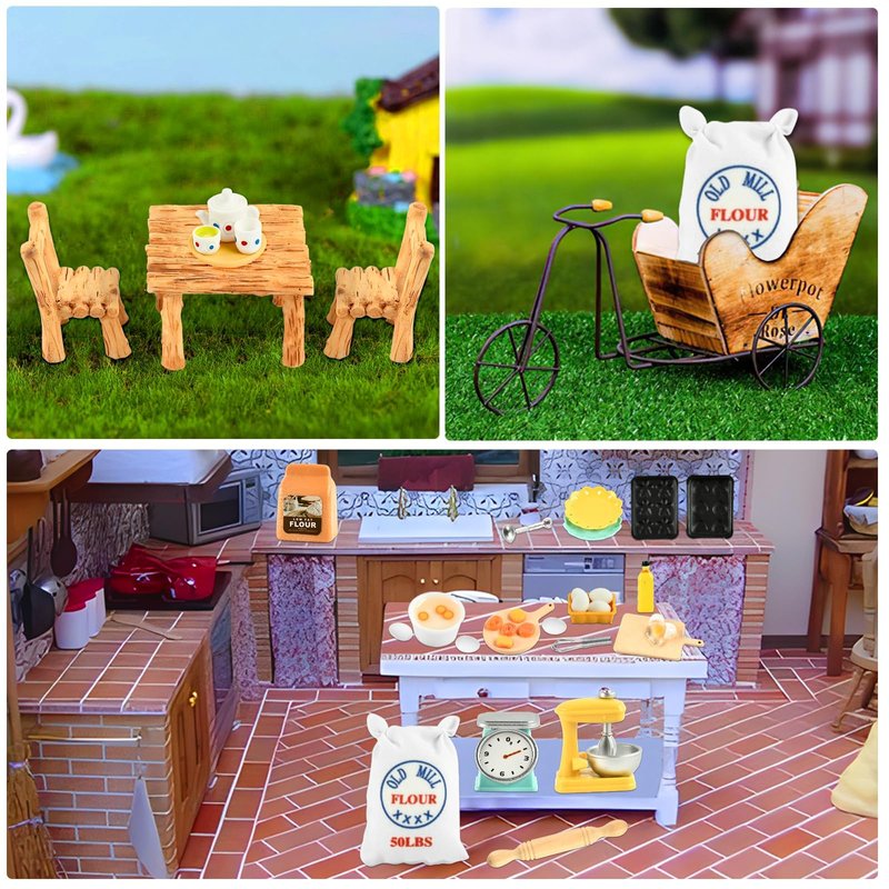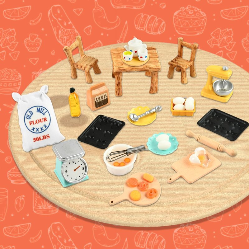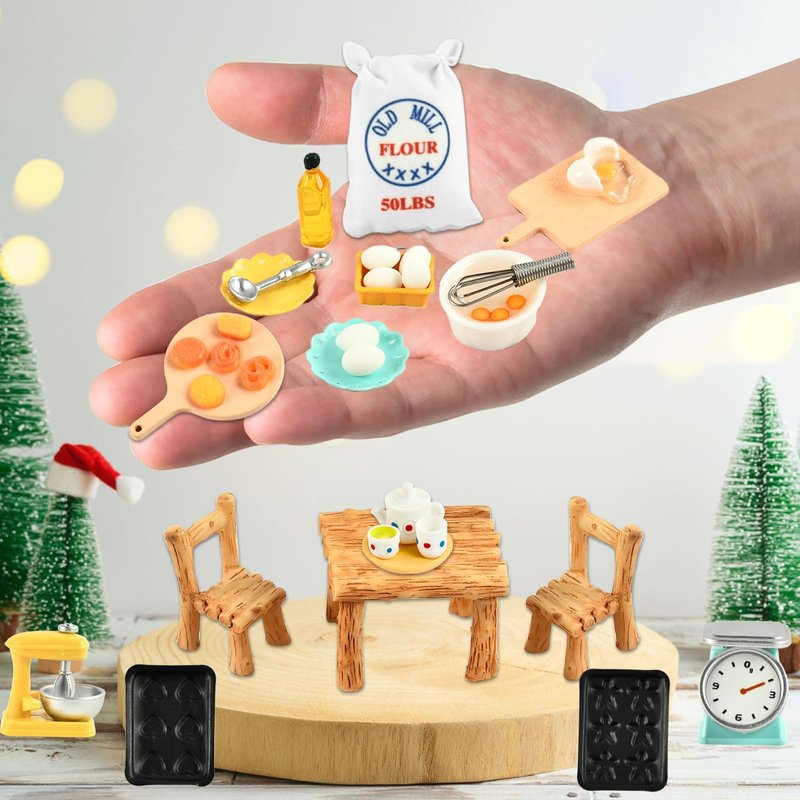 - Doll House Accessories and Furniture- The set includes 35 miniature Christmas dollhouse decorations, including mini tables, chairs, eggs, flour, low-gluten flour, frying pans, bread containers, tea sets, egg beaters, kitchen scales, rolling pins, cookies, cooking oil, toy fried eggs, and realistic toys to make your dollhouse more vivid and exciting