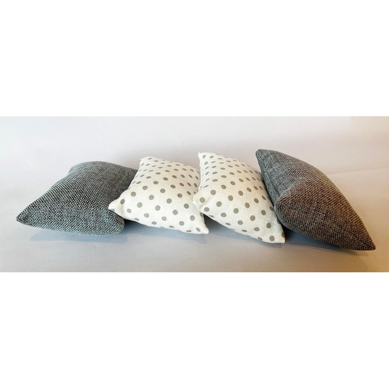 - Elegant Bedding & Linen: The mini gray comforter is finished on both sides; one side is a linen style gray fabric and the other side has a white fabric with gray polka dots. Two of the pillows are finished in the gray fabric, and the other two are made from the polka dot fabric. All four pillow covers can be removed.