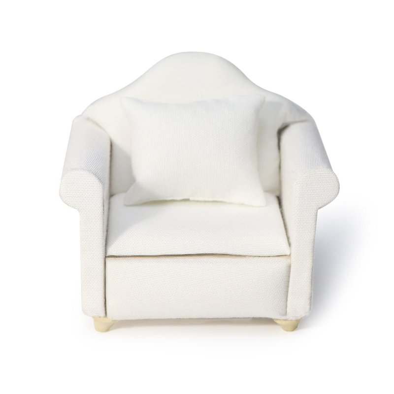 Dollhouse Couch Miniature Furniture Sofa with Pillows for Living Room Desktop Decoration Fabric Sofa Mini Home Scene Accessories Ornament (Single Sofa, White)