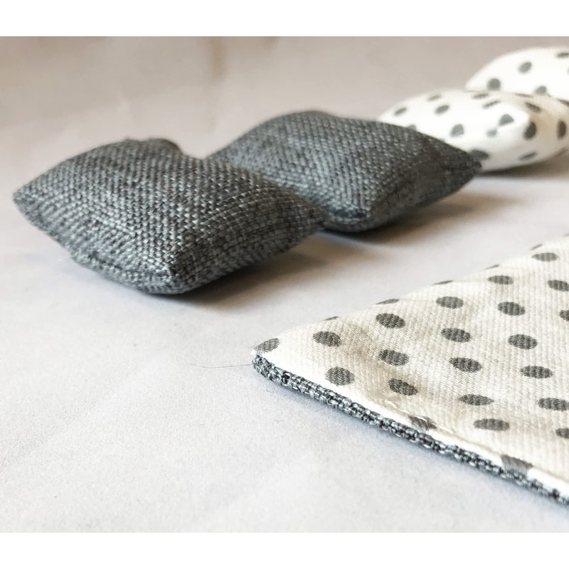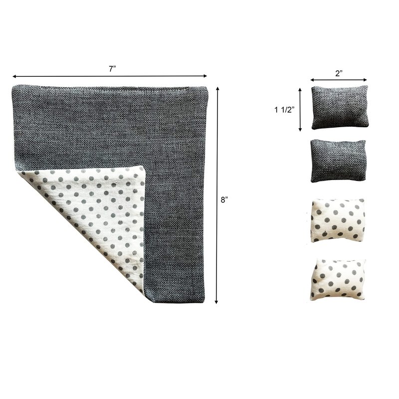 - Elegant Bedding & Linen: Mattress sheets are white; the comforter is made from a grey fabric on one side, and polka dot fabric on the other; two pillows are made from the grey fabric, and two from the polka dot fabric. All bedding and mattress can be removed to customize this bed to your needs.