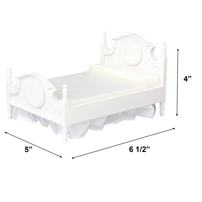 Your dollhouse only deserves the best furniture. Our dollhouse miniature furniture items are skillfully hand made, and are of high quality. Each piece is individually packaged. This dollhouse bed has detailed patterns on the bed posts and head boards. It includes a mattress, sheets, and pillow.