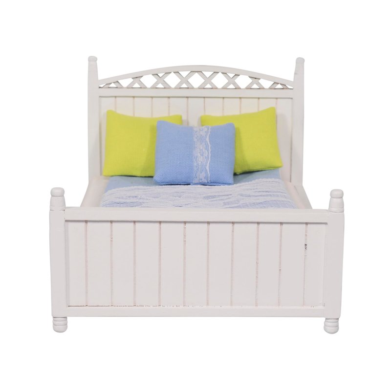 - Carved Details: This small modern doll house bed features a headboard and footboard with carved details to make sure they don’t just look good but more realistic as well. The bed frame is painted in white.