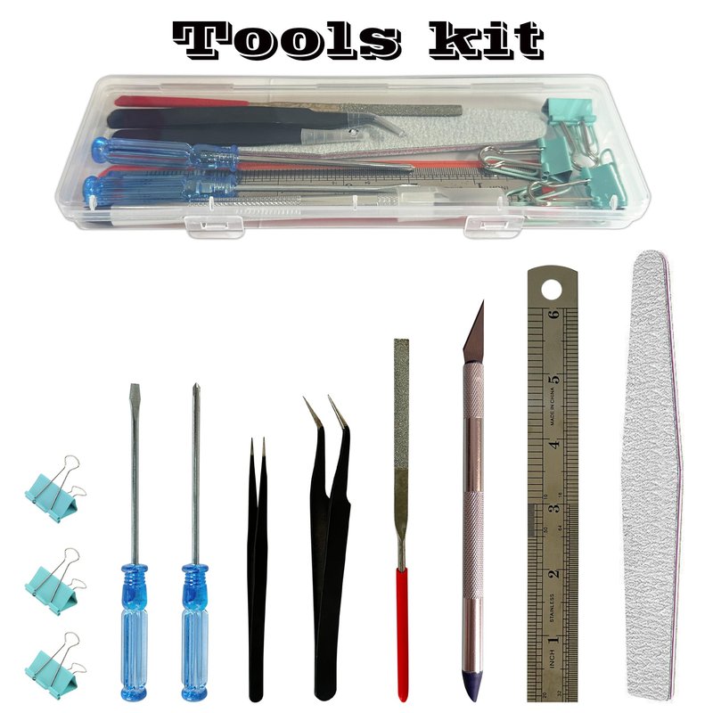 - 【Tools Kit Included】: There are some necessary tools attached, such as 2 x screwdriver (phillips & flat-blade), 2 x tweezers with plastic caps (curved & pointed), 1 x metal tool file,1 x pen knife with plastic protector, 1 x double-sided steel ruler (CM / IN), 1 x polish bar,all tools are in a plastic box.