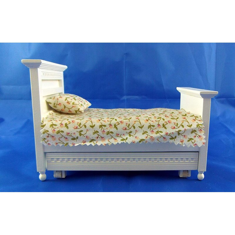 From Aztec Imports Town Square Miniatures collection of detailed dollhouse miniatures. This Bed will make a nice addition to your miniature scene. . .. . Single bed with linens, removable pillows and comforter and working trundle. . .. . Dimensions: 6.75"W x 5.25"H x 5"D. . .. . 1in to 1ft. 1:12 Scale. This is sized for a dollhouse. . .. . Detailed scale model for adult collectors. Not intended for children under 14.