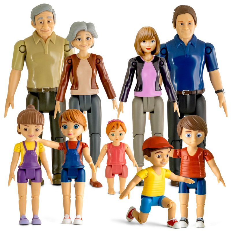 Dollhouse People, Bendable Dollhouse Family Set – 9 Poseable Figures Including Grandpa, Grandma, Mom, Dad, Sister, Brother, Cousins, and a Baby Girl – Perfect for Dollhouse Play and Imaginative Fun