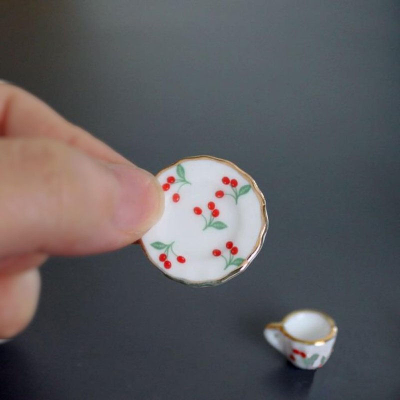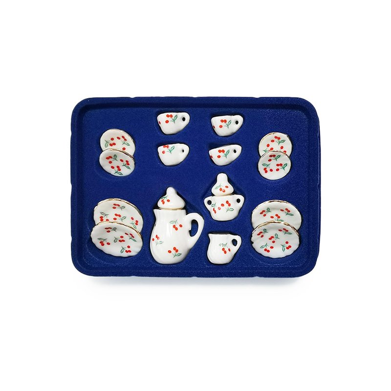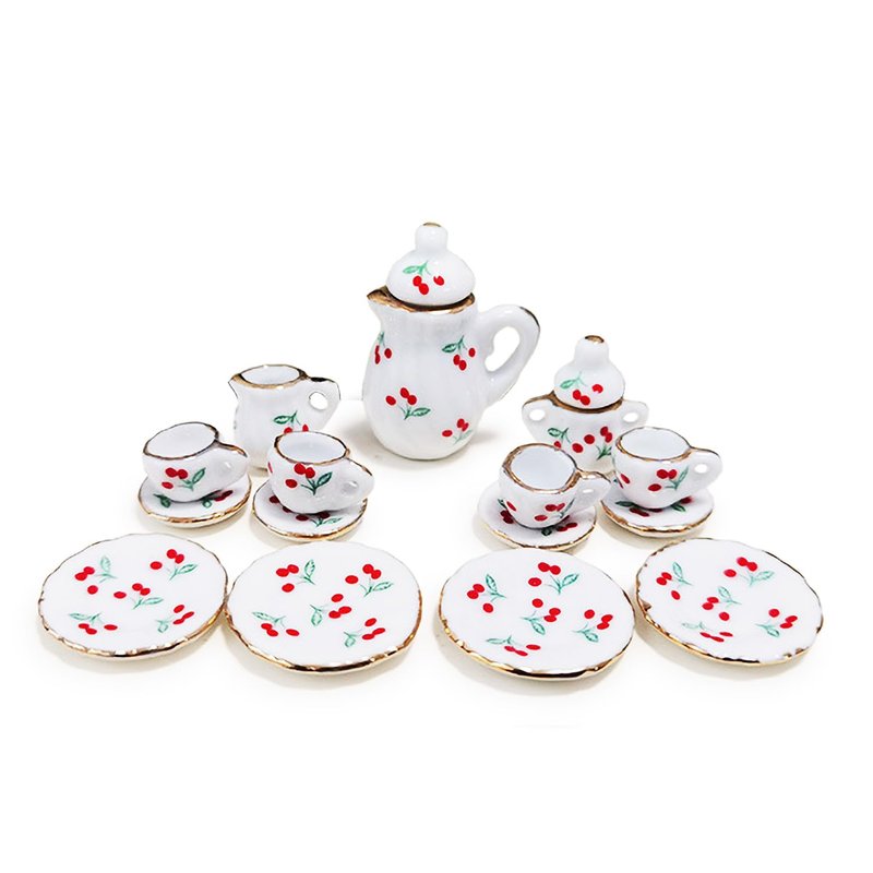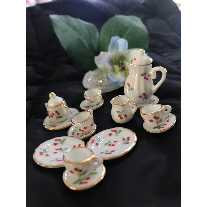 Dollhouse Porcelain 1/12 Scale Dollhouse Miniatures Tea Coffee Set Pot Cup Doll's House ;Mini Tea Set,Ceramics Tea Set (Red Cherry)