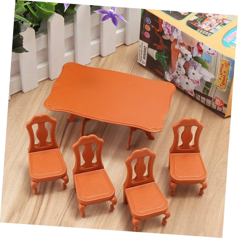 - Dollhouse Tableware Play Set-- Dollhouse furnishings come with a set of dining room table chair, including 4pcs Chairs and a table. A brown color furniture set for dollhouse role play.the mini model for a dollhouse or diorama or any other crafting use. for memorial lamps Christmas decoration