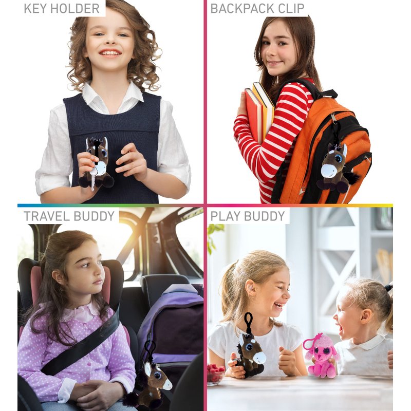 - THE HORSE PLUSH STUFFED ANIMAL KEYCHAIN COMES WITH UNIQUE DESIGN YOU WILL LOVE - Have an exciting imaginary play time with your little ones and the Big Eye Horse Toy Plush Clip Keychain. It will bring a smile to everyone who loves adorable stuffed animals for girls and boys. The Horse plush toy keychain serves as keyring for kids and adults to secure their keys or bag. This cute animal horse keychain plush charm also makes a great travel buddy.