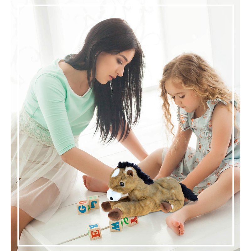 - IDEAL USE FOR HORSE PLUSH ANIMALS STUFFED TOY - Our cute Super Soft Lying Brown Horse is a great addition to any plush collection. Couples can express their love by surprising each other with stuffed animals plush. Animal stuffed toys help develop a child's social skills and creativity when enjoying playtime with their family. Horse cuddly stuffed animals are your little one's huggable plush doll best friend when playing, traveling and learning.
