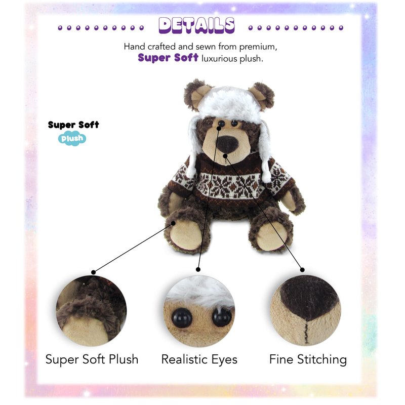 - INCLUDED WITH THE PURCHASE OF ADORABLE CUTE BEAR PLUSH - Includes 1 DolliBu Sitting Grizzly Bear Super Soft Plush decorated with realistic features of cute bear. The bear's body is made of brown soft fabric that makes the plush perfect for cuddles & snuggles. The bear plush toy comes with an adorable brown hat and sweater set attached to its soft body. The bear's eyes make the critter so charming. This cute bear plush toy buddy measures 9" high.