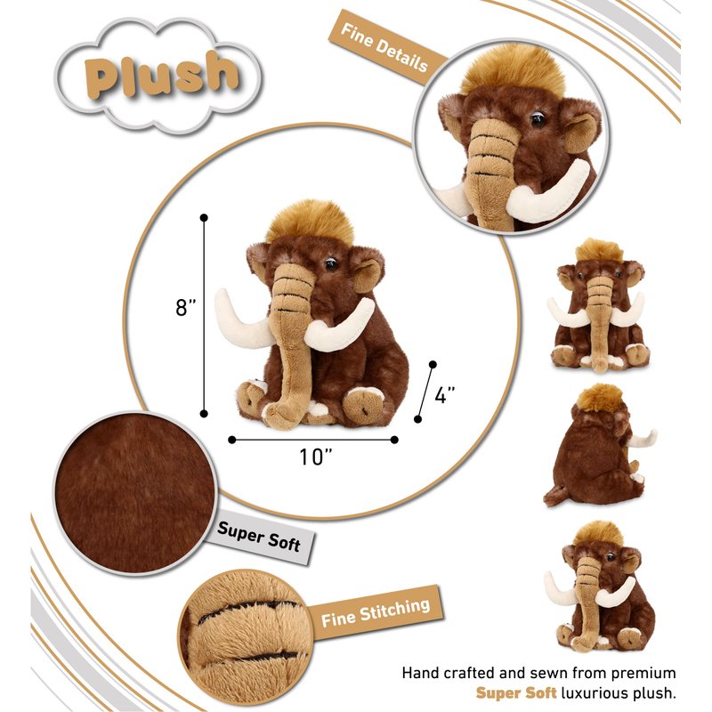- HIGH-QUALITY MAMMOTH STUFFED ANIMAL FOR GIRLS - The machine-sewn Mammoth toy is made of premium-quality super soft 100% polyester. Beautifully crafted with durable, child-friendly features. Huggable, snuggly plush baby toys mammoth in a cute sitting position. Super soft stuffed animals for girls and boys designed to be your little one's best buddy. To maintain fluffy stuffed animals, wash mammoth plush with cold soapy water and allow to air dry.