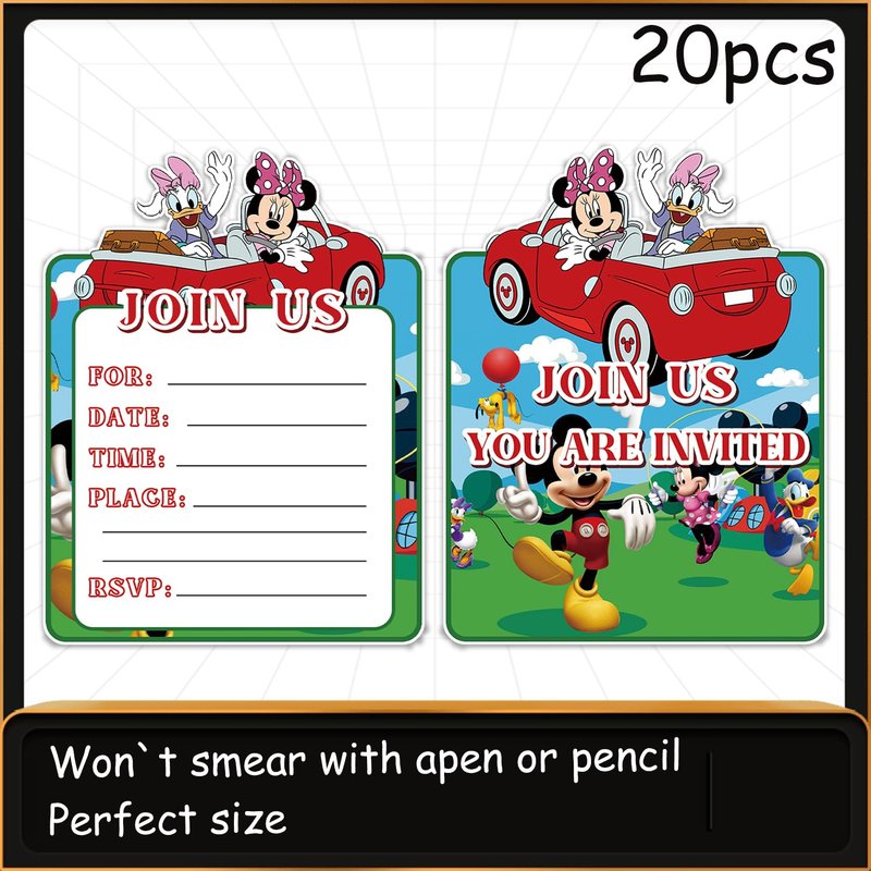 DoMiDoLa 20Pack Mickey Birthday Party Decoration Mickey Theme invitation card for Kids Birthday Party Supplies (20Mickey)