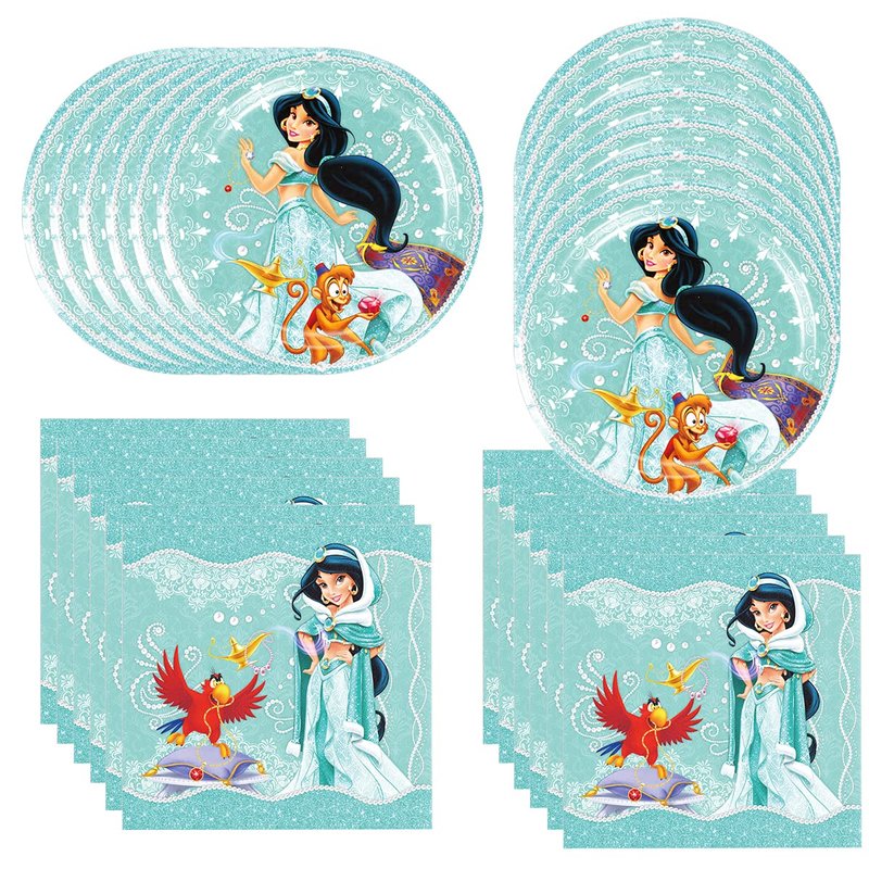 DoMiDoLa 40Pcs Princess Jasmine Party Supplies include 20 plates, 20 napkins Tablecloth for the Princess Jasmine Birthday party Decoration