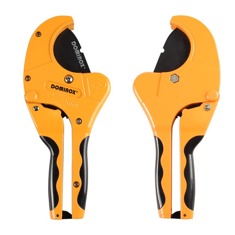 - ADVANCED STRUCTURAL DESIGN: The triangular blade of the DOMINOX PVC cutter penetrates the pipe wall with less pressure, causing less damage to the pipe and less damage to the hand. The excellent ratchet mechanism allows the user to quickly complete the opening and closing cutting operation with one hand. The ergonomic rubber-wrapped handle saves effort and continuous work without injury to the hand.