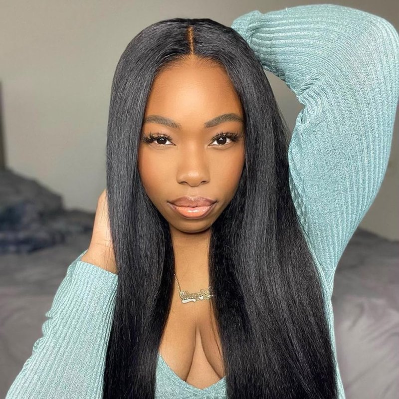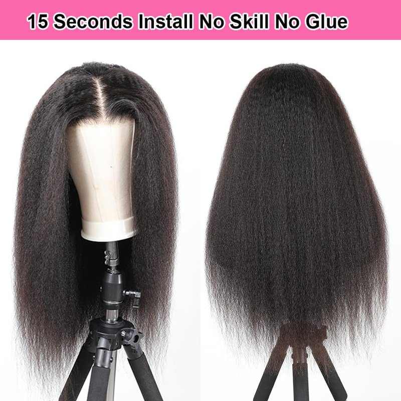 - 100% Glueless Wig:200% Density Yaki Straight Glueless Wigs Human Hair Lace Wig Can Be Weared Within 15s which is more easy and convenient and friendly especially for the beginners,No Need to Cut the Lace No Glue No Gel,No Skill,Just Wear to Go