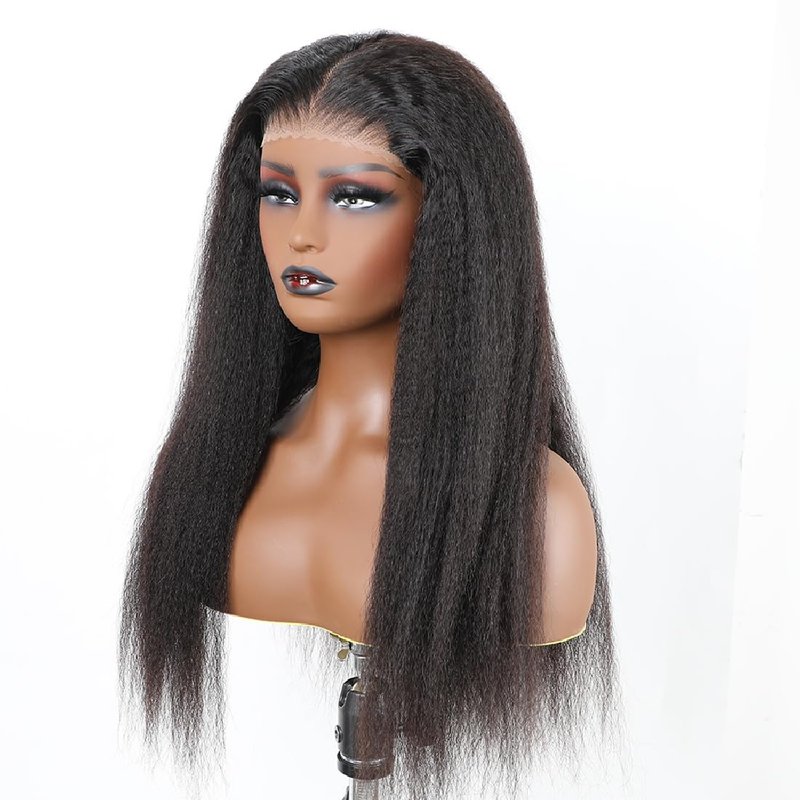 - 100% Glueless Wig:200% Density Yaki Straight Glueless Wigs Human Hair Lace Wig Can Be Weared Within 15s which is more easy and convenient and friendly especially for the beginners,No Need to Cut the Lace No Glue& Gel,No Skill,Just Wear to Go!