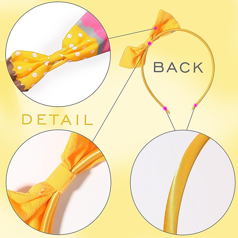 - ✏️【Cute Yellow Pencil Headband】Each set includes 1 pencil headband, making it a unique and eye-catching accessory for kids heading back to school. The bright yellow color is vibrant and playful, perfect for adding a pop of color to your outfit. The size is approximately 5.5 x5.5inches.