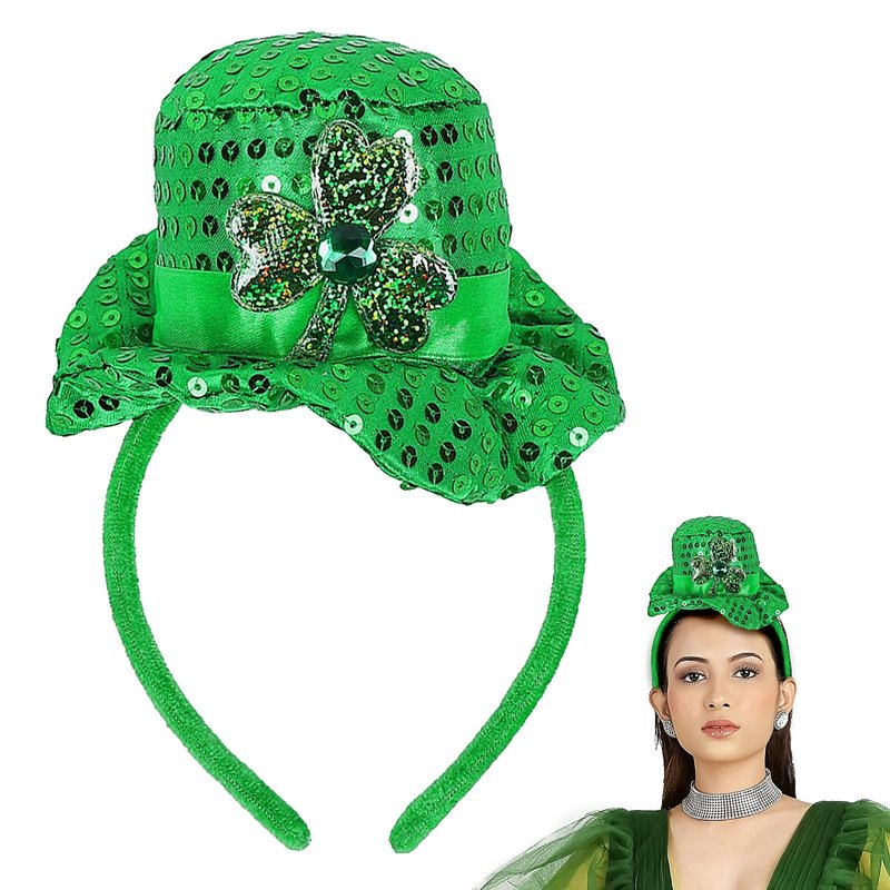 Doneace St. Patrick's Day Headbands for Kids Green Top Hat Headband Irish Sequin Shamrock Leprechaun Hat Hairband Irish Day Headpiece Hair Hoop Holiday Cosplay Costume Cute Hair Accessories 1Pcs
