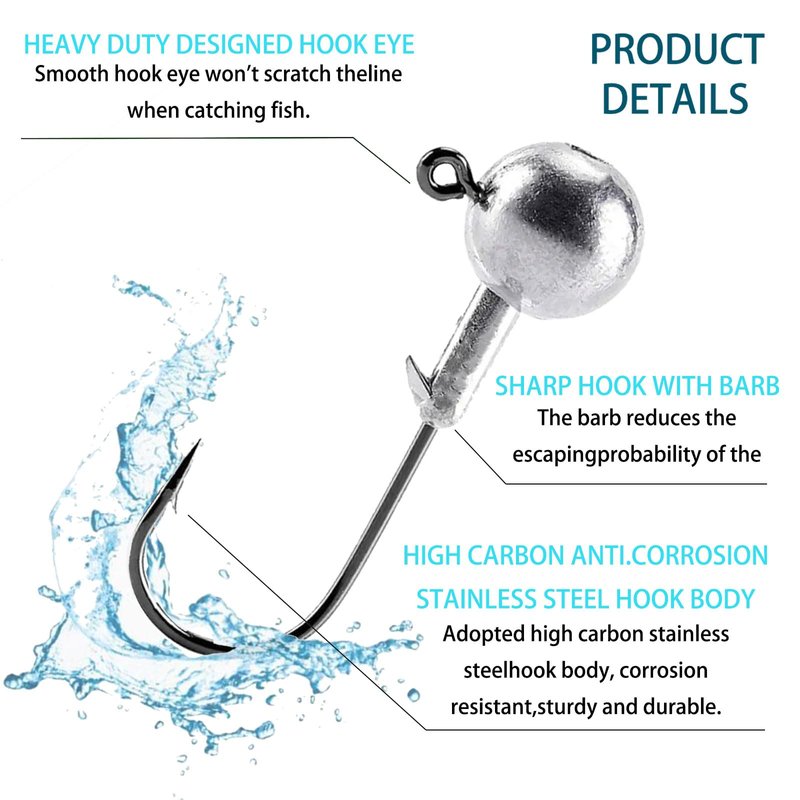 - PREMIUM SHARP LEADHEAD HOOKS - Leadhead hooks use sharp barbs for fast penetration. Heavy-duty hook eye design with a smooth inner curve of the hook eye so that the line won't scratch while fishing.