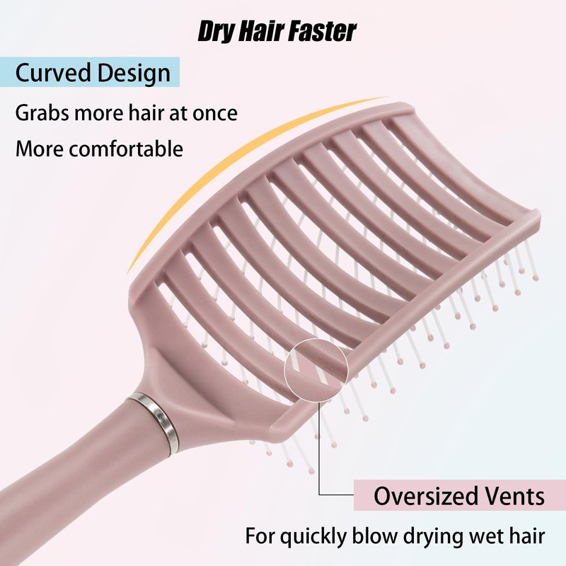- 🤎【Kind to Hair】Our hair comb has a meniscus curved design, which can deeply massage the scalp in all directions. The soft comb teeth fit closely to the scalp, are durable, non-deformable, and less likely to generate static electricity. The ventilation design to promote hair heat dissipation. Easily create a volumizing hairstyle at home.