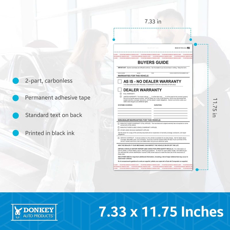 Donkey Auto Products 2-Part Buyers Guide Form - Adhesive Tape - English - As is - Warranty (100 per Pack)