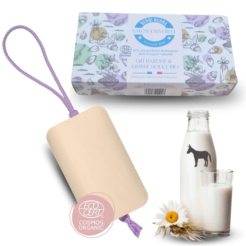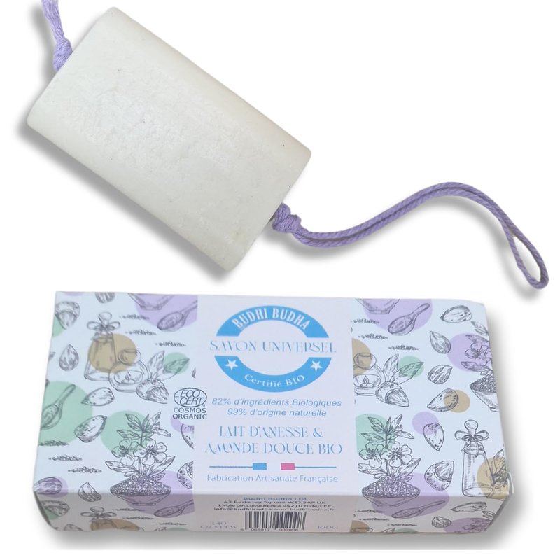 Our donkey milk soap is crafted with a blend of donkey milk and almond milk, making it a natural remedy for a wide range of skincare concerns. Donkey milk is known for its soothing properties, which reducing skin irritation and redness. It is also a natural remedy for acne, eczema, and psoriasis, making it an excellent choice for those with sensitive skin. Our soap is super soft, making it perfect for little ones aged 3 years and plus, and its anti-acne properties make it an excellent choice for teenagers. Additionally, its anti-aging properties make it a great choice for elders. Our soap is certified organic by ECocert, ensuring that it is free from harmful chemicals and pesticides. We take pride in our commitment to using natural ingredients, and our soap is handmade with care in a French workshop that embraces inclusivity. We believe that everyone deserves to enjoy the benefits of natural skincare, and our donkey milk soap is a testament to that.