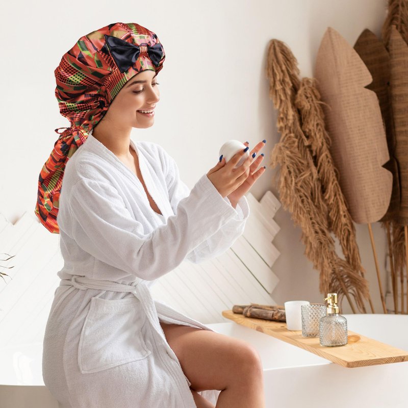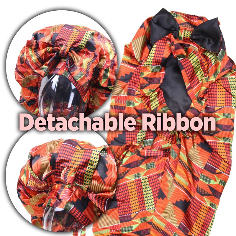 - FASHIONABLE PATTERN | REMOVABLE BOW TIE | ATTACHED TIE Fashionable patterned bonnet allows you to sleep in style while protecting your hair. The removable bow tie is also reversible, with our solid print on one side and patterned design on the other side, as a beautiful embellishment to your sleep cap. Sleep peacefully and preserve hairstyles without cap coming off with our attached tie to secure bonnet in place.