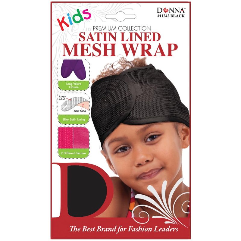 DONNA KIDS Satin Lined Mesh Wrap Silk Hair Wrap for Sleeping Head Wrap for Kid, Girl BLACK