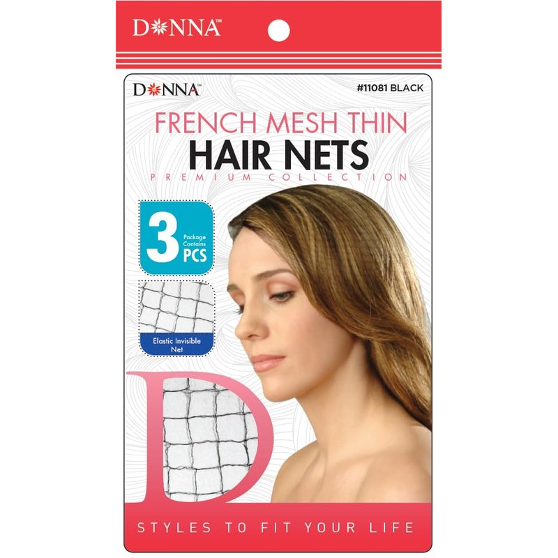 DONNA PREMIUM COLLECTION FRENCH MESH THIN HAIR NETS 3PCS