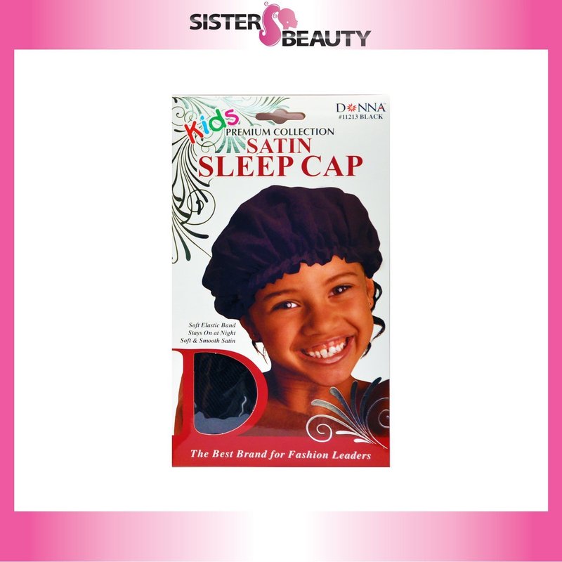 Donna Premium Collection Kids Satin Sleep Cap #11213 Black - 2 pack, Soft elastic band, stays on during the night, keeps hair in place, soft satin, smooth satin
