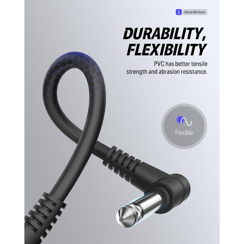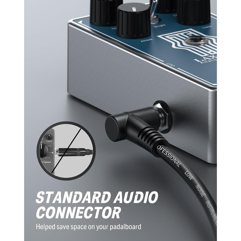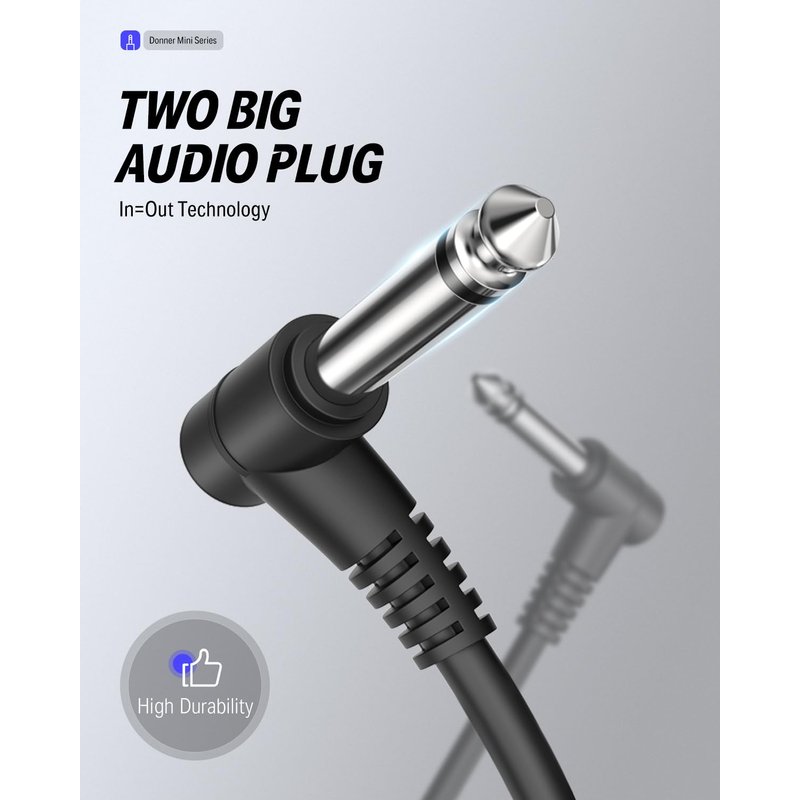 - Two big core audio plug, In=Out Technology, molded TS 1/4" Plugs are perfect for pedal boards.