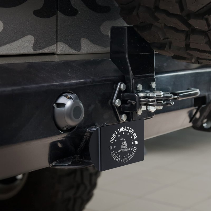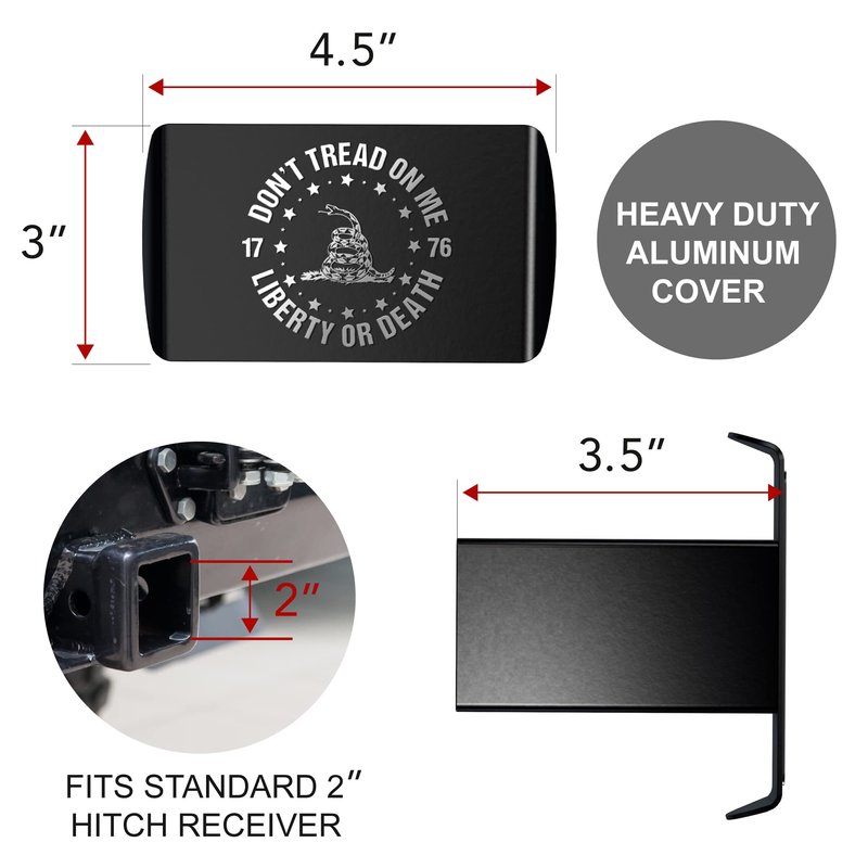 - Don't Tread On Me Gadsden flag hitch cover for 2" receivers Made from heavy-duty aluminum and powder coated Requires standard hitch pin that is NOT included