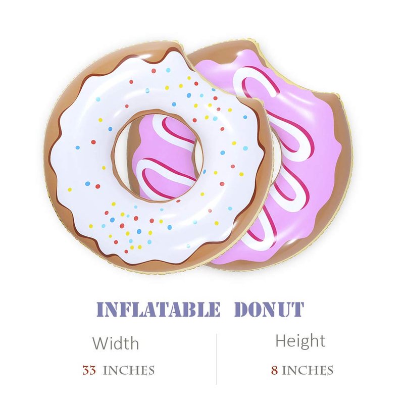 - Perfect for Kids or Skinny Adult: Each donut pool float is 33 inches diameter (Deflated size: 94cm /37inches), perfect size for kids (Skinny Adults) to have great summer fun or just to lounge and relax. 2 packs can be enjoyed with friends for double fun.