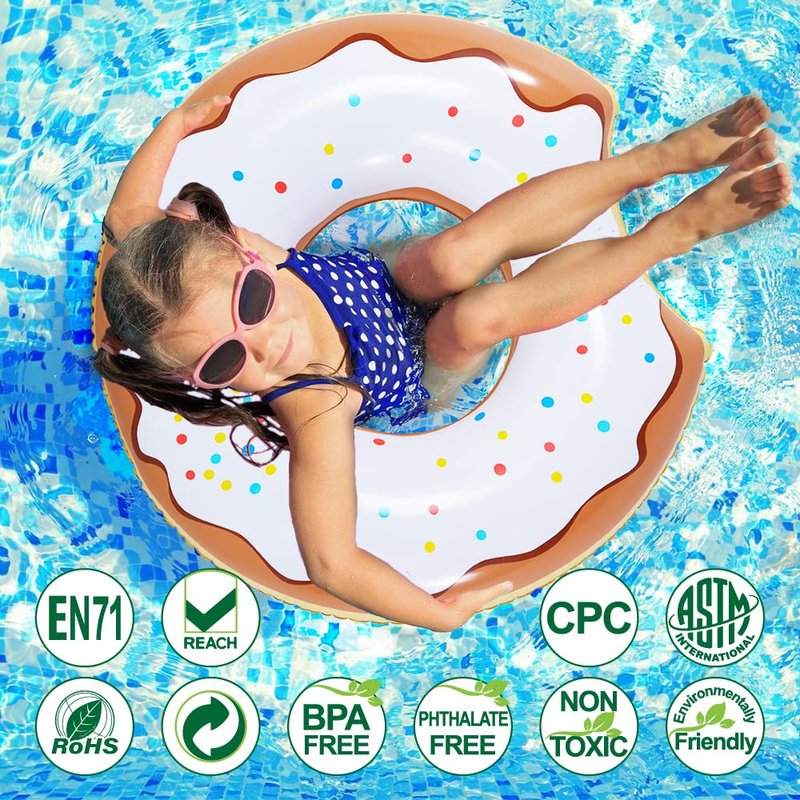 - Superior Material: The inflatable donut is made of non-toxic and environmental friendly PVC materials. Materials of the inflatable donut beach toys are safety tested.