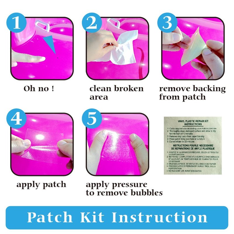 - Buy With Confidence: A first-aid repair patch is included for a hole or a leak caused by accident puncture or tear. It is easy to use and keeps the fun going. Please feel comfortable to contact us and let us know if you have any further questions.