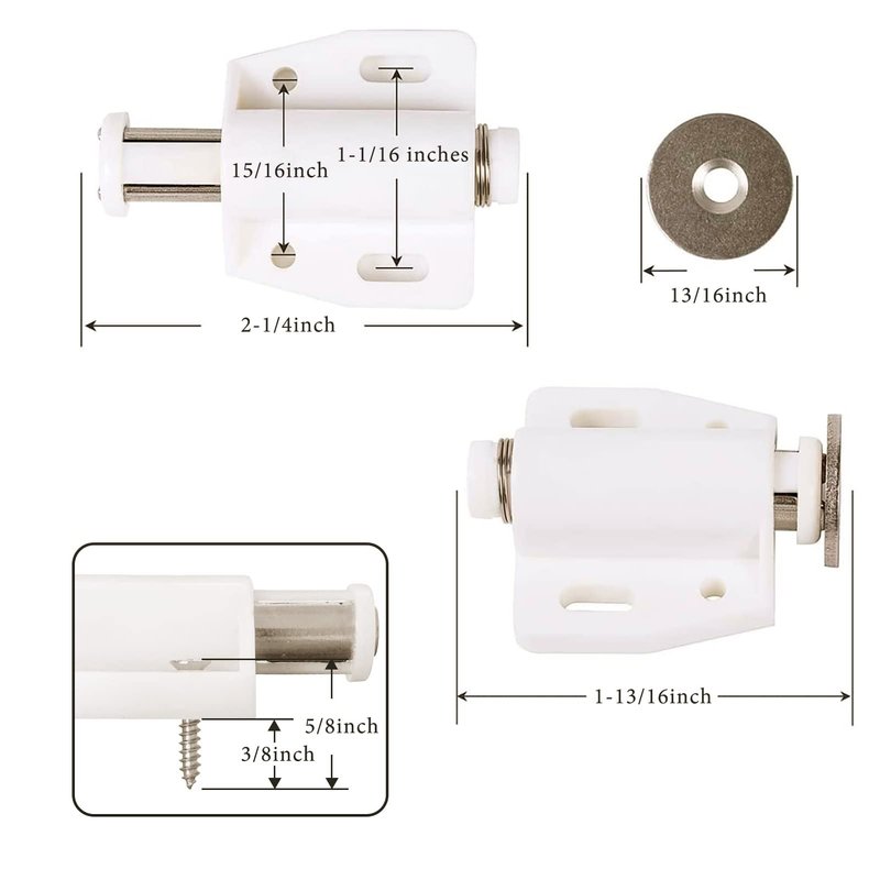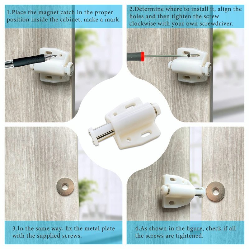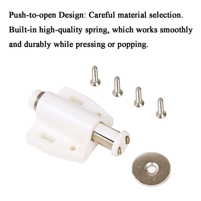 - 【Package Contents】4 x Magnetic Touch Latch, 16 x Stainless Screws. Perfect for doors with no handle or pull. Simply press against the door, the magnetic touch catch will be activated to push the door open.
