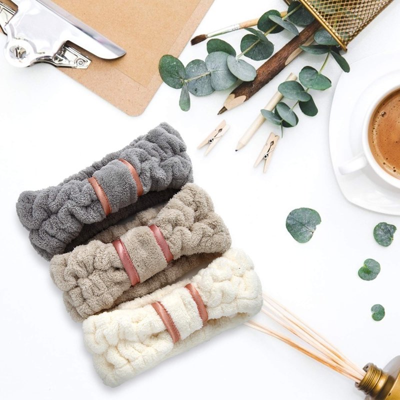 DOOBO 3 Pack Spa Headbands Microfiber SkinCare Face Wash Headband Facial Headband Makeup Towel Headbands for Women for Washing Face(White, Gray, Khaki)