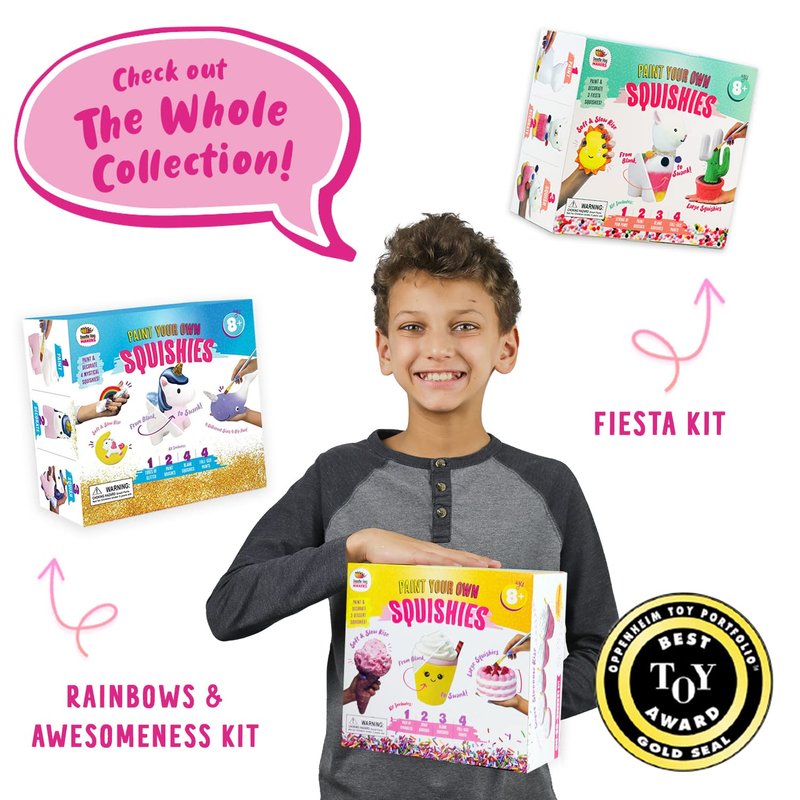 Our Paint Your Own Squishies Oh-So-Sweet Kit comes with everything your kids need to customize 3 large, soft squishies until they look good enough to eat. No need to run to the store for anything - we’ve got it all taken care of for you!